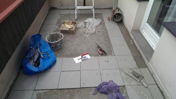 Oprava balkónu. Použita hydroizolační stěrka + dlažba Taurus Nevada. Léto 2013.Výškové práce | Balkóny - rekonstrukce, opravy, hydroizolace, oplechování