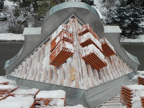 Výroba a montáž všech klempířských prvků nové střechy.