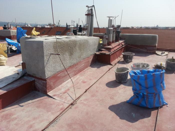 Oprava komínů hrozících pádem - léto 2013.
