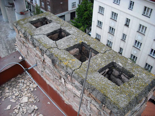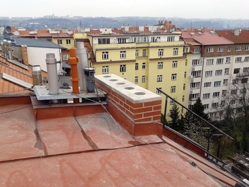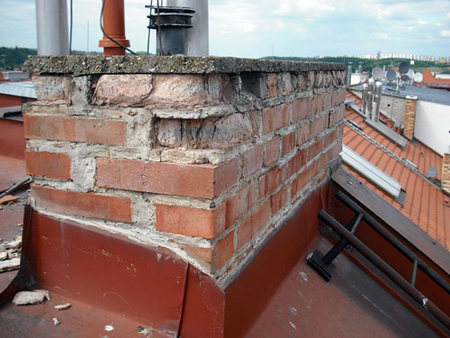 Odbourání šesti havarijních komínů pod úroveň střechy.
