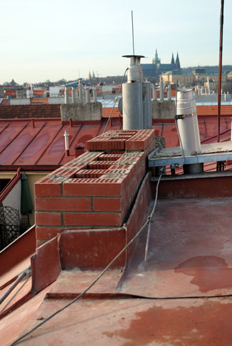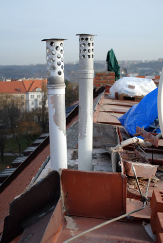Stavba nových komínových těles - Eliášova, Bubeneč