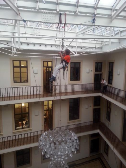 Montáž lustru v sídle Matonni