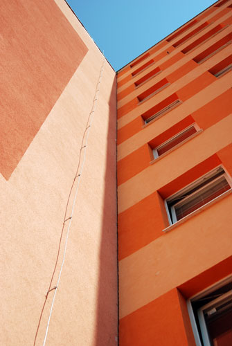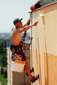 Ve chvíli, kdy nesedí odstíny omítek na nově zatepleném domě, nastupují výškaři a sjednocují barvu nátěrem.