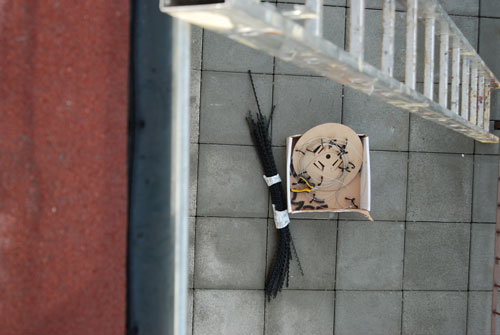 Montáž vytápění okapů a svodů do bytového domu s terasami.