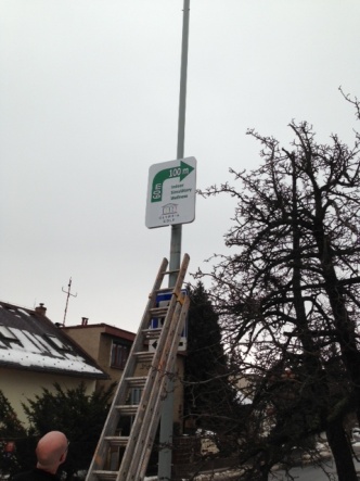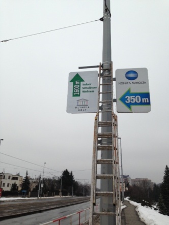 Demontáž a montáž reklam na stožárech lamp veřejného osvětlení.