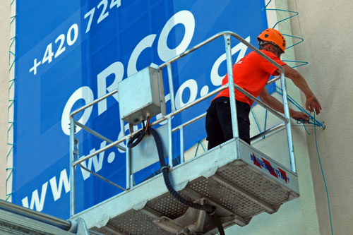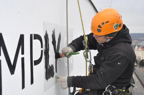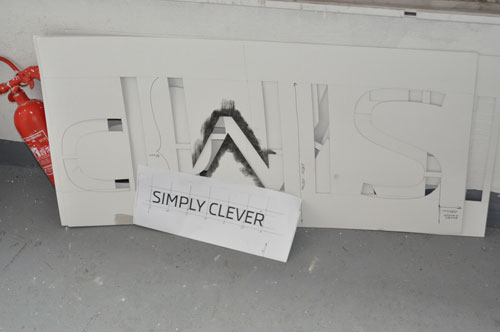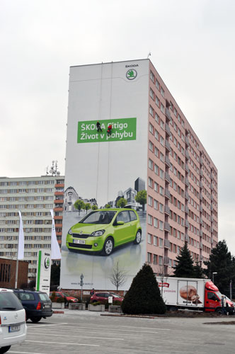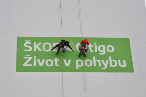 Malovaná reklama na Škodu Citigo. Nápisy.