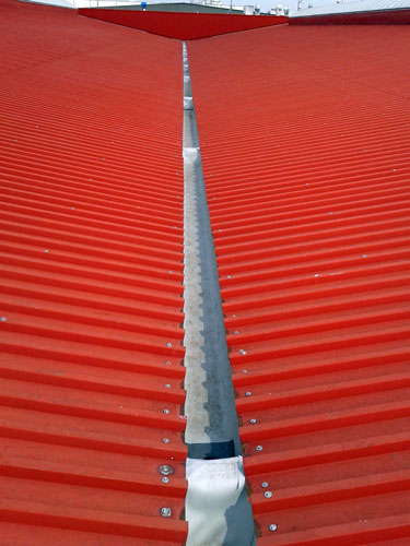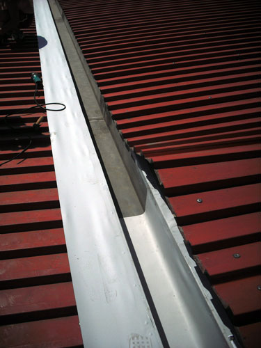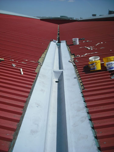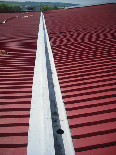 Hala z roku 1989 byla osazena laminátovými žlaby. Ty věkem vypraskaly a začaly protékat. Vzhledem k tomu, že střecha byla vyspádovaná směrem dovnitř, se jednalo o závažný problém - zatékalo přímo do středu haly.
