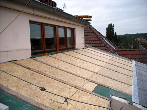 Oprava střechy nad podkrovním bytem, do kterého zatékalo.