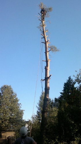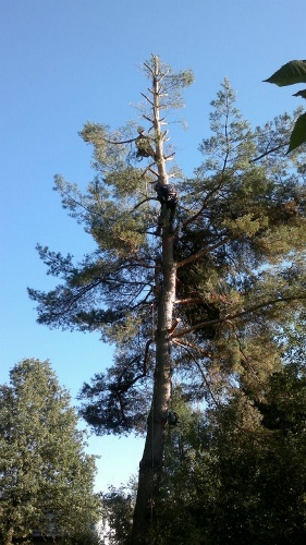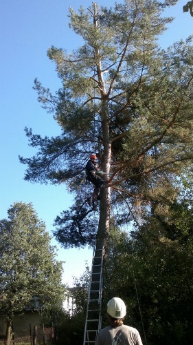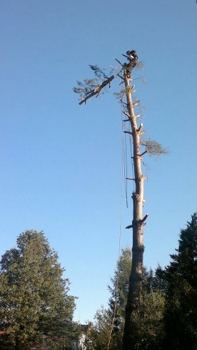 Kácení borovice horolezeckou technikou.