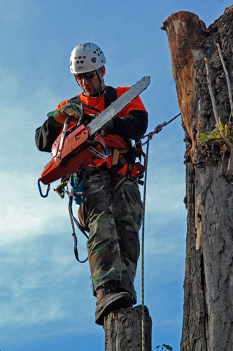 Kácení stromu poškozeného bleskem.