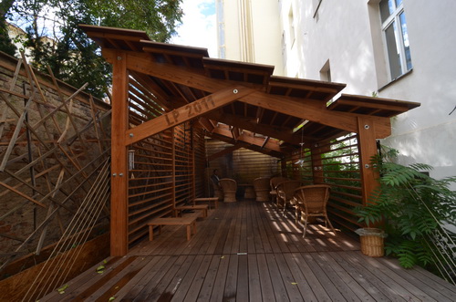 Terasa s otevírací střechou - čajovna Šamanka